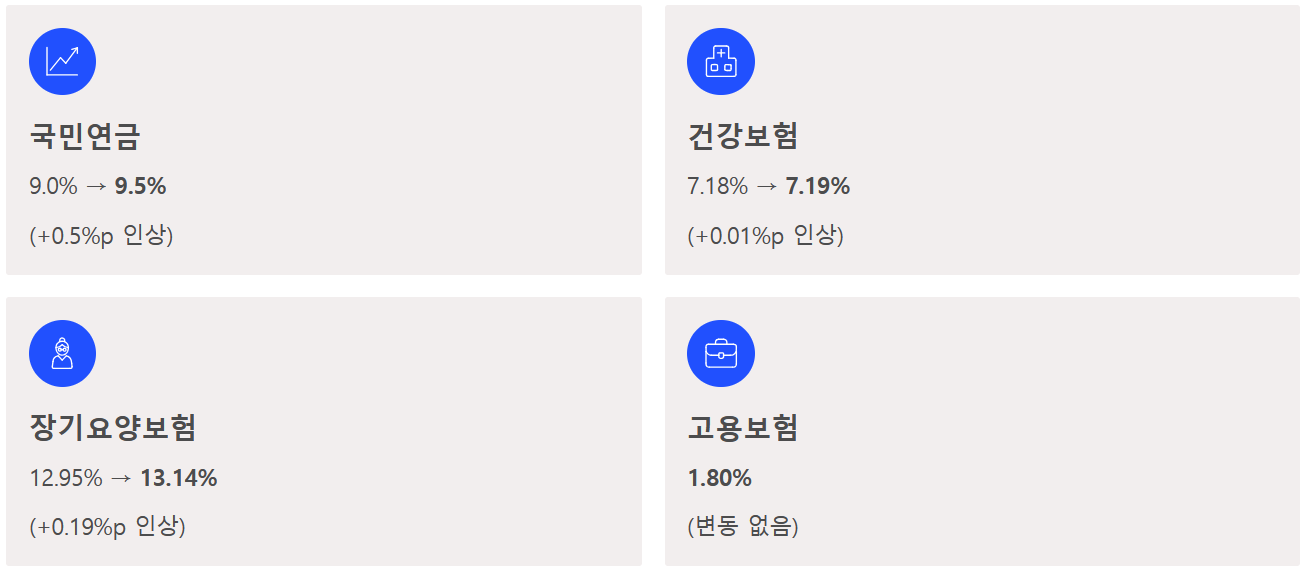- 국민연금: 9.0% → 9.5%