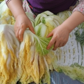 절임 배추는 온도와 습도 관리가 중요합니다. 실내온도 15~18도에서 절이는 것이 가장 좋고, 표면이 마르지 않게 젖은 천으로 덮어주세요. 소금이 속까지 고루 배이도록 절임 중간마다 손으로 눌러주며, 중간중간 짠맛이 잘 스며들었는지 확인하면 완성도가 높아집니다.